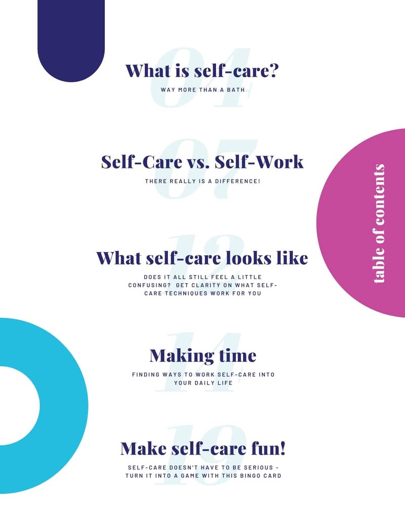 Get 27-pages packed with worksheets, exercises, and action steps. Discover self-care tools and techniques that work for you, find out how to work them into your schedule, and then learn how to bring the fun back to self-care!